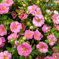 ![]() | Happy Face® Yellow & Happy Face® Pink Paradise Potentilla. Here is a great combo of color and truly tough plants! They are both deer resistant native plants and produce flowers all summer in a haze of yellow and pink. They like full sun, but are tolerant of rocky soils but will be larger and fuller if the soil immediately around the plants is rich. Simple and trouble free! |