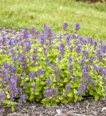 An early blooming catmint, bearing lavender blue flowers which pop against the golden yellow foliage in spring. Foliage stays bright all season. Blooms continuously without being cut back.