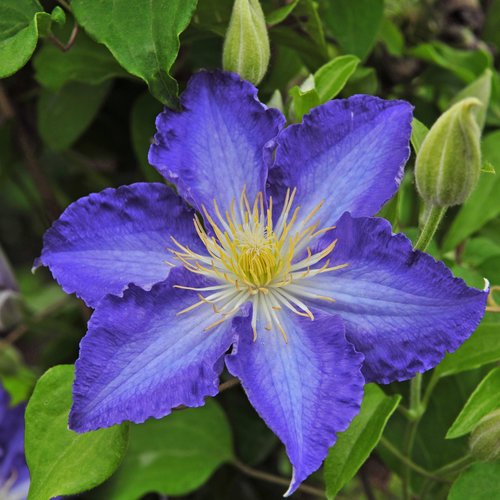 Maintenance Category:EasyBlooms On:New WoodBlooms On:Old WoodBloom Time:Early SummerBloom Time:Mid SummerHardiness Zones:4a, 4b, 5a, 5b, 6a, 6b, 7a, 7b, 8a, 8b, 9aWater Category:AverageNeeds Good DrainageUses:Border PlantUses:ContainerUses:Good for ScreeningUses:Specimen or Focal PointMaintenance Notes:"Head in the sun, feet in the shade" - that's the old adage for success with clematis. They thrive when the vine itself gets plenty of sunshine, while the base of the plant and roots enjoy cool, shady conditions. You can accomplish this with mulch, by planting it where the root zone is sheltered by a neighboring shrub, or with some slate or rocks, which mimics how clematis grow in nature.