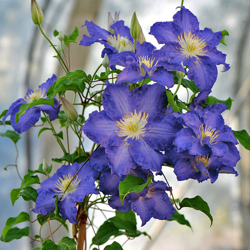 Brother Stefan® clematis is one of the newest additions to our line of reliable, easy-to-grow clematis. Large, ruffled, blue flowers begin to appear in early summer and continue through mid to late summer. It's the perfect accent on a pretty trellis in your perennial garden, or covering a rail, arbor, or pergola.