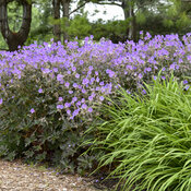 I saw these at my garden center in the Spring and grabbed two after seeing the plants in full bloom on Garden Answer . They are in full sun and are very happy in their new home! They have increased in size and are already on their second flush of blooms. I just love the dark foliage with the bright blue flowers, and also glad that the neighborhood rabbits leave them alone!!