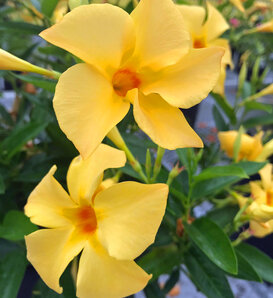 Maintenance Notes:Mandevilla needs plenty of sun and does best when it is hot. It will struggle if temperatures are lower than 45 degrees. It can be overwintered indoors with appropriate care. It will go out of flower in the winter and may drop leaves to help it survive the winter. Do not over water in the winter, which is problematic. Keeping the soil on the dry side can help mitigate root rot issues. Use good, well-drained potting soil with Mandevilla. Spider mites and mealy bugs can be problematic. Treat as needed. Your local garden center can help you choose an appropriate treatment method.