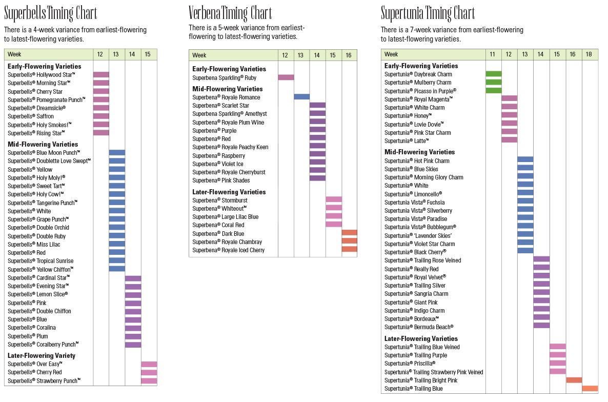 Superbells®, Supertunia® & Superbena® Flowering Timing Chart