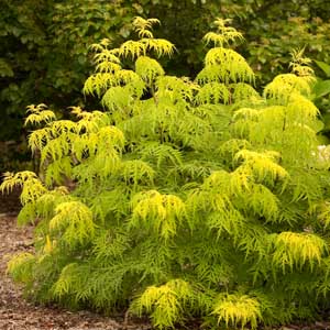 | Lemony Lace™ Elderberry gives that lacey look and bright golden green foliage to add a visual spike to any landscape. They are easy to grow and benefit from a hard pruning each spring to encourage new strong young shoots. Graceful and similar to Japanese Maples and others that may not tolerate USDA zone 3 – you can get the same effect with a lot less work! |